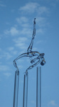 2009een danser zoekt zijn balans op 3 glazen buisjes van 150 cm hoog