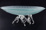 20093 voorovergebogen figuren dragen een schaaltje en vormen tezamen een kariatide. Ze staan op een glazen plateau welke weer gedragen wordt door 3 glasbuisjes van 150 cm hoog.