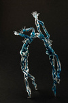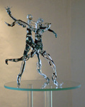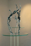 Dansers dansen als een paar over een glazen plateau. Dit plateau ligt op 3 glazen buisjes en vormen tezamen met een voet van RSV de sokkel.(150 cm hoog)