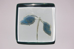 2010Een ginko blad is bewerkt met zilvergeel, daaromheen liggen koperdraadjes. Het geheel is versmolten in de glasoven tussen 2 glasplaten.