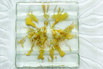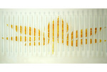 2010Een blad wat is bewerkt met zilvergeel is gebakken tussen glas en vervolgens in repen gesneden en nogmaals gebakken. Er ontstaat ahw een vertraagd blad bestaande uit strookjes glas die weer op een grote glasplaat zijn versmolten.