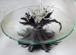 2011Ronde glazen schaal, met details van vilt en staaldraad